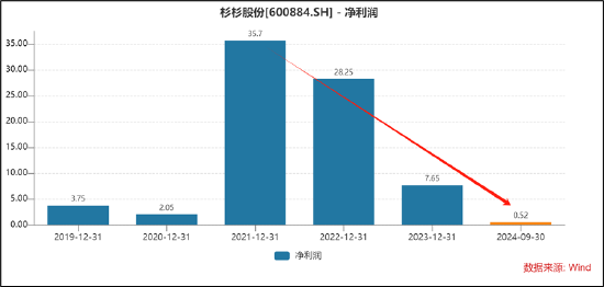 在行业周期压力下,杉杉股份利润快速缩水,将陷入亏损边缘。三季报显示,公司2024年前三季度实现营业收入132.84亿元,同比下降9.69%;实现归母净利润2321.29万元,同比下降98.07%。需要指出的是,公司2021年净利润高达35亿元,显然公司盈利在大幅缩水。
