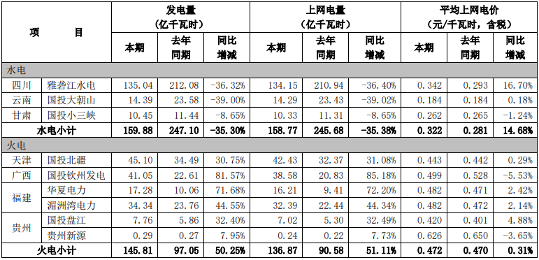 2.国投电力1-6月份新增装机容量83.43万千瓦,为光伏、风电。 2023年1-6月份境内电厂发电量同比变动情况说明: