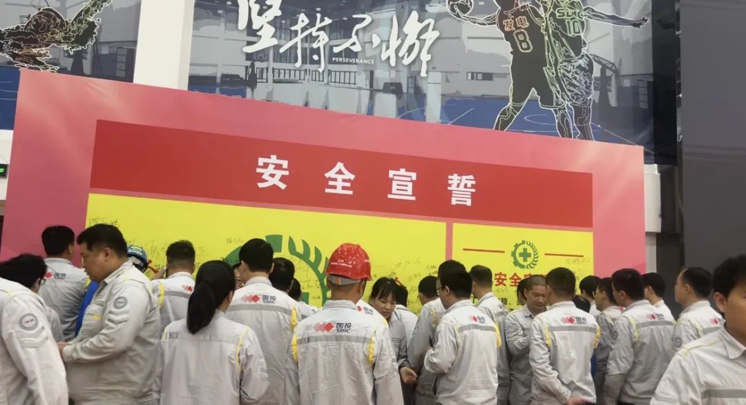 “为了企业安稳、员工安全、家庭安心,我宣誓……”国投湄洲湾电力在安全总监带领下,全体与会人员高举右拳,庄严宣誓。铿锵有力的誓言响彻现场,充分彰显了坚守安全红线、保障生命安全的坚定信念与决心。全体员工在印有活动主题的展板上郑重签名承诺。通过“一人一笔一承诺”的形式,将安全生产责任层层传导、压实到每一个岗位、每一个人。