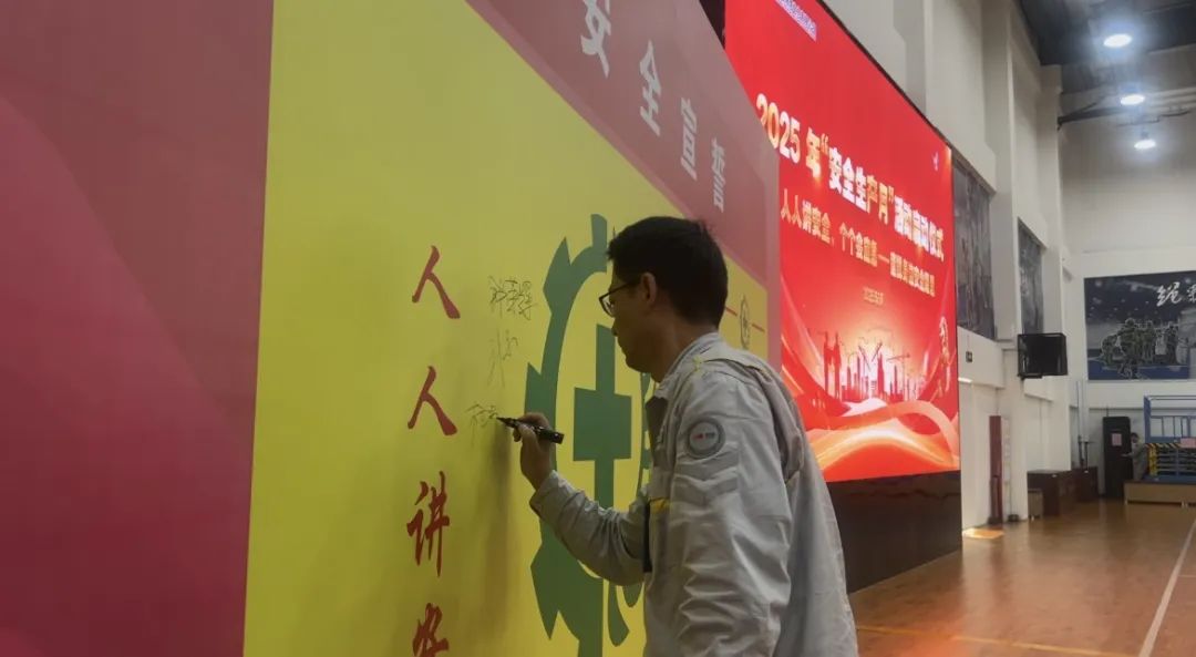 “我承诺:严守安全规章,履行岗位职责!”贵州新源与承包商代表郑重签署安全生产承诺书。鲜红的签名横幅上,密密麻麻的名字彰显全员力保安全生产的决心。“这不是走过场,”贵州新源总经理刘实说,“要把活动扎进车间班组,把措施落到操作现场!”