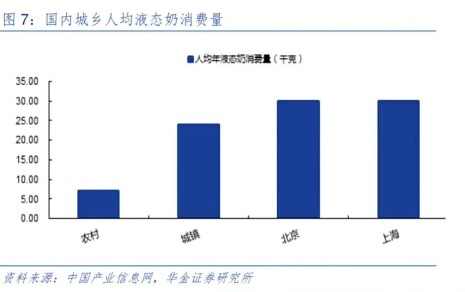 因为目前国内一二线城市的人均乳制品消费量并不低,且品牌渗透率较高,可开发空间有限,但三四线城市的人均乳制品消费量还有较大提升空间。