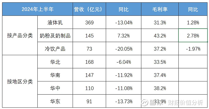 2、奶粉及奶制品:上半年营收145亿元(占比24%),同比增长7.3%(蒙牛下滑13.7%);二季度加速增长,增幅16.5%。