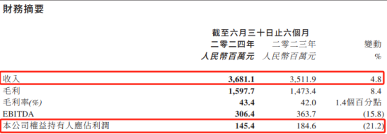 伊利股份2024年前三季度业绩摘要,数据来源:三季报