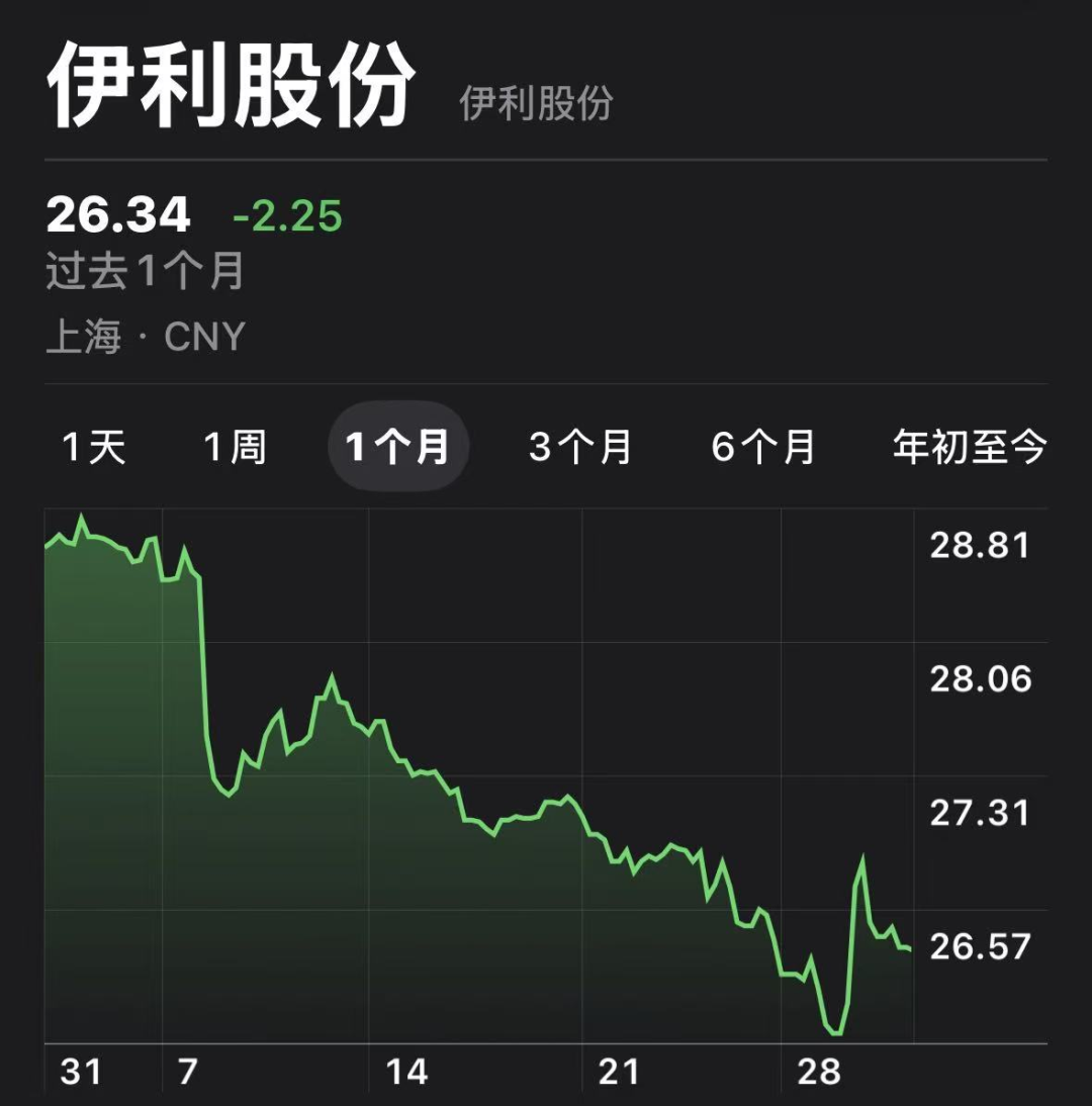 伊利股份近一个月股价走势图