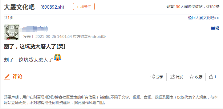 针对这两日股价上蹿下跳,股吧网友们纷纷留言。有网友心态崩溃,称,“割了,这坑货太磨人了,哭”,还有网友称,“下周一继续跌停!”。