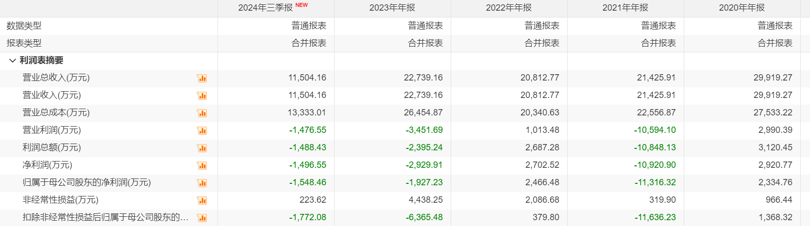 大晟文化自身的问题不容忽视。该公司主营业务为网络游戏研发、运营以及影视剧制作、发行,但近年来业绩持续承压。2021-2023年及2024年1-9月,大晟文化实现营业收入分别为2.14亿元,、2.08亿元、2.27亿元和1.15亿元,同期归母净利润分别为-1.13亿元、0.25亿元、-0.19亿元和-0.15亿元。