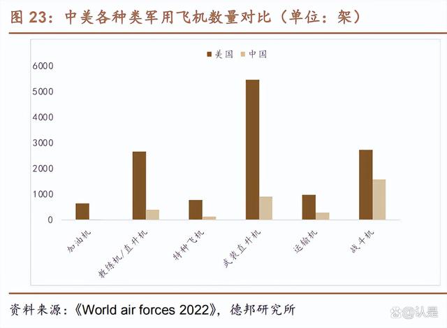 关键假设 5:教练机配置数量空间测算Ⅰ.在机队规模快速上升、先进飞机占比提升的情况下,加强飞行员的训练,满足装备人员需求是实现强军目标的重要保障,我们假设到 2035 年,我国教练机的配置比例可以达到当前美国的 1/3。关键假设 6:直升机配置数量空间测算Ⅰ.美军直升机的数量规模按照《World air forces 2022》披露数量和披露的新增订单为基础,到 2035 年我国直升机数量可以达到当前美国的 1/2。