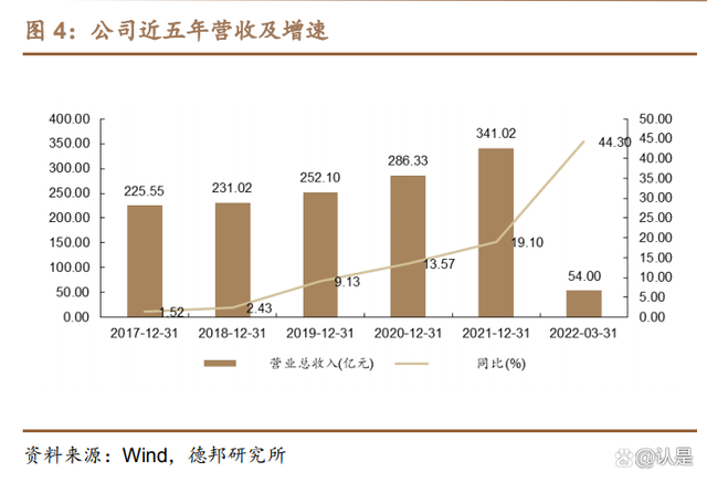 航发动力近 5 年营收端与利润端均实现稳健增长。收入端:营业收入从 2017 年的 225.55 亿元增长至 2021 年的 341.02 亿元, 2021 年同比增长 19.10%,近 4 年复合增速为 10.89%,主要系客户需求增加带动公司产品交付增加;2022 年一季度公司实现营业收入 54 亿元,同比增长 44.30%。利润端:公司盈利能力不断提升,归母净利润从 2017 年的 9.60 亿元增长至 2021 年 11.88 亿元,2021 年同比增长 3.63%,近 4 年复合增速为 5.47%;2022 年一季度实现归母净利润 0.66 亿元,同比增长 92.51%。