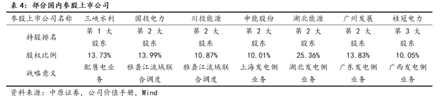 公司围绕主业上下游开展股权投资。公司在坚持做好水电主业的同时,积极开展产业链上下游和相关新兴领域战略投资。公司稳健开展资本运作,投资主要集中在大水电、综合能源、配售电等主业领域。这主要包括对电能消纳区域优质综合能源平台的股权投资,以及对长江中上游流域优质水电企业进行战略投资。