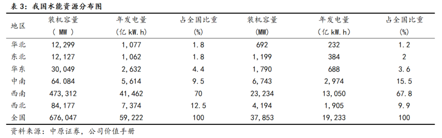 大型水电站具有区域垄断及资源稀缺性。我国水能资源位居世界首位,为全球最大的水电生产国,拥有5个世界排名前12大的水电站,管理了世界最多的百万千瓦级水电机组。根据国家发改委2005年发布的全国水利资源复查结果,我国水力资源理论蕴藏量年电量6.08万亿千瓦时,理论蕴藏量装机6.94亿千瓦;技术可开发年电量2.47万亿千瓦时,技术可开发装机5.42亿千瓦。我国十三大水电基地总装机规模达到2.75亿千瓦,正在开发和将开发的水电站中,装机500万千瓦以上水电站增量近乎为零,优质大型水电站具有较强稀缺性。