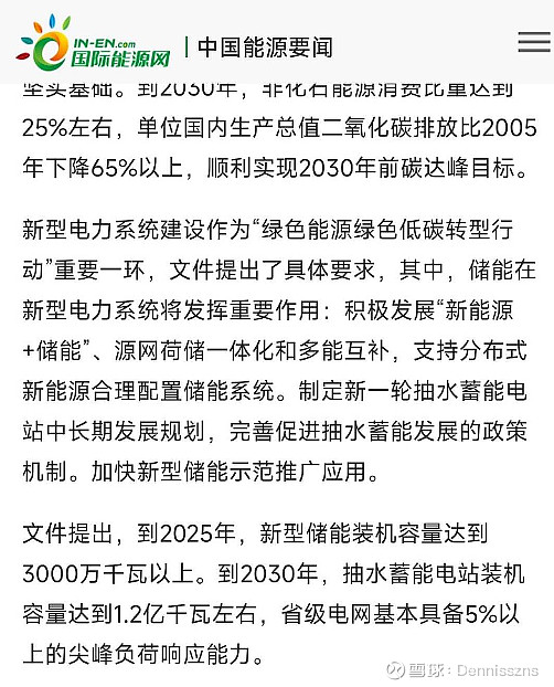 碳达峰2030年抽水储能电站装机容量要达到1.2亿千瓦,且新能源大规模并网需要储能调节电源。