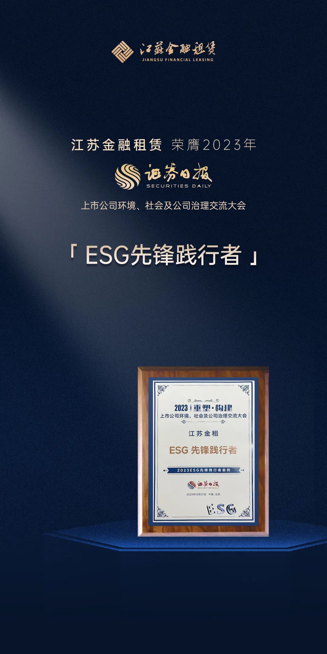 近日,由证券日报社主办、国新咨询协办的“2023上市公司环境、社会及公司治理交流大会”在北京举办。本次论坛以“重塑·构建”为主题,旨在重塑企业价值,构建中国特色ESG生态体系,为ESG发展提供有益的思想和实践借鉴。江苏金租凭借在环境保护、社会责任、公司治理等领域的突出表现获评“2023上市公司ESG先锋践行者”。