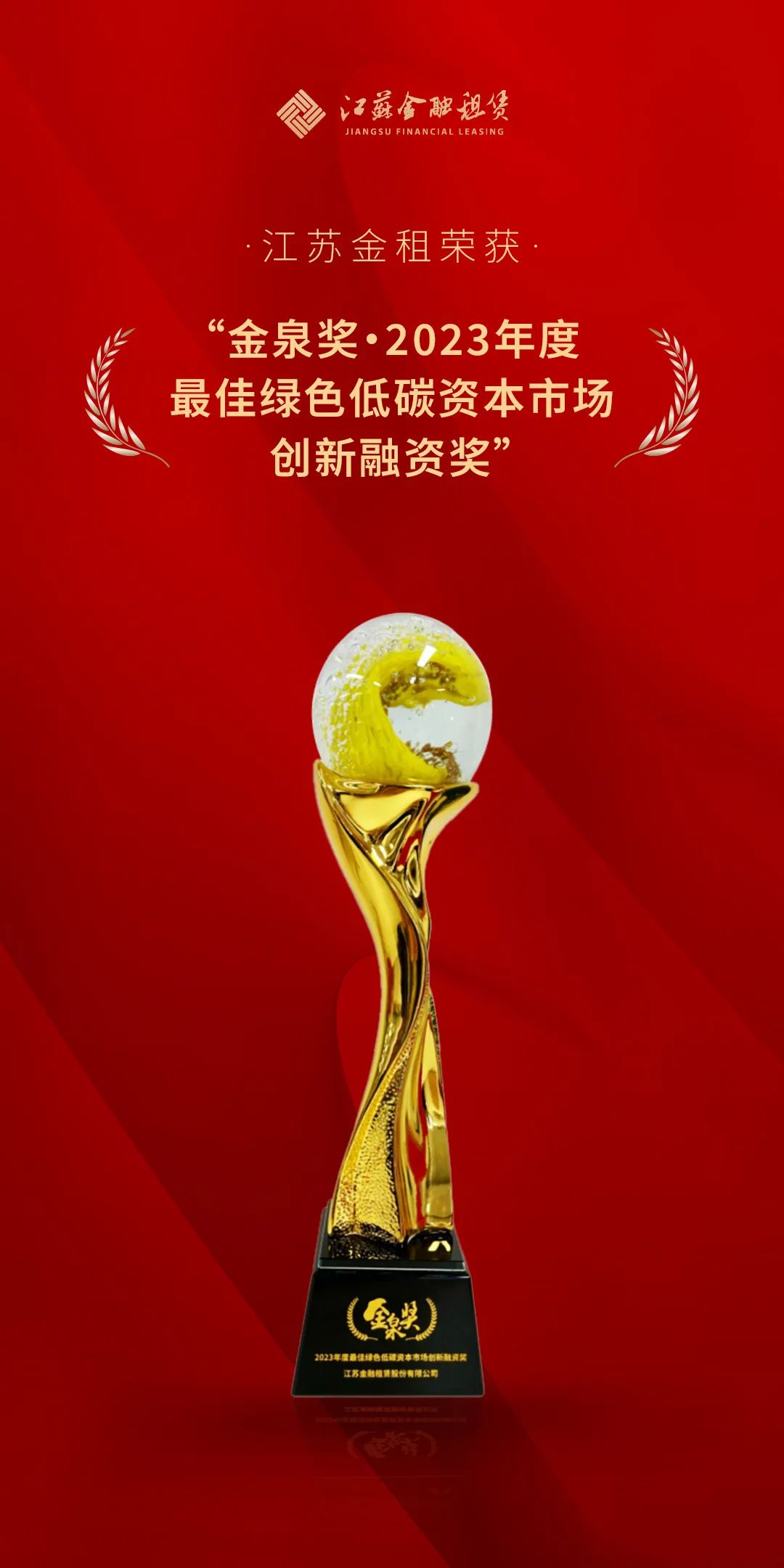 3月29日,首届融资租赁资产证券化高质量发展大会暨“金泉奖”颁奖典礼在中国(上海)自由贸易试验区临港新片区举行。江苏金租发行的2023年绿色金融债券(第一期)获评“2023年度最佳绿色低碳资本市场创新融资奖”。