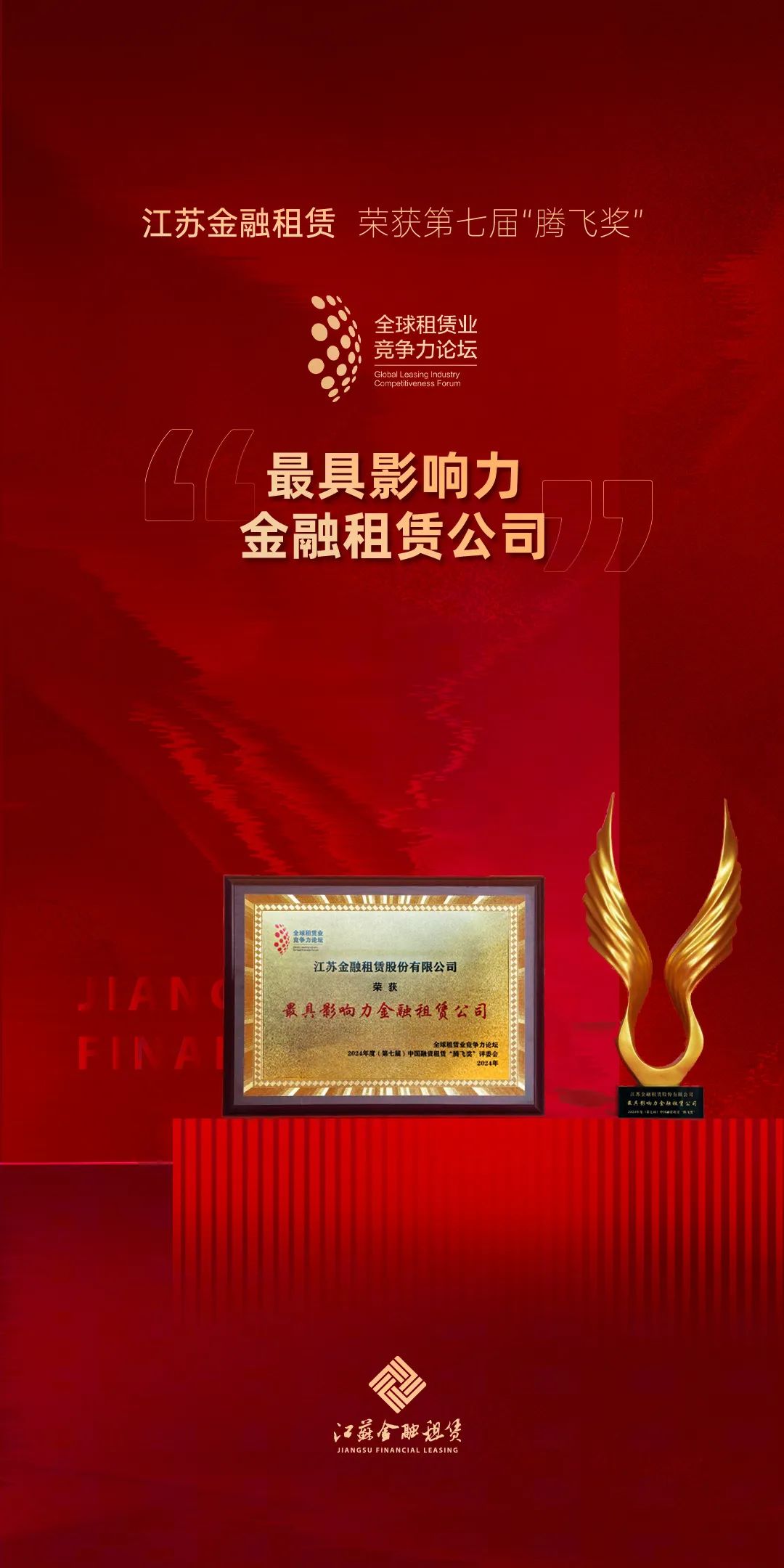 12月4日,以“发力‘两新’租赁,助力先进产能”为主题的2024年(第十一届)全球租赁业竞争力论坛年度峰会在天津正式召开。会上,江苏金融租赁股份有限公司(简称“江苏金租”)以其在服务实体经济及小微租赁领域的优秀表现,荣获第七届“腾飞奖”最具影响力金融租赁公司。