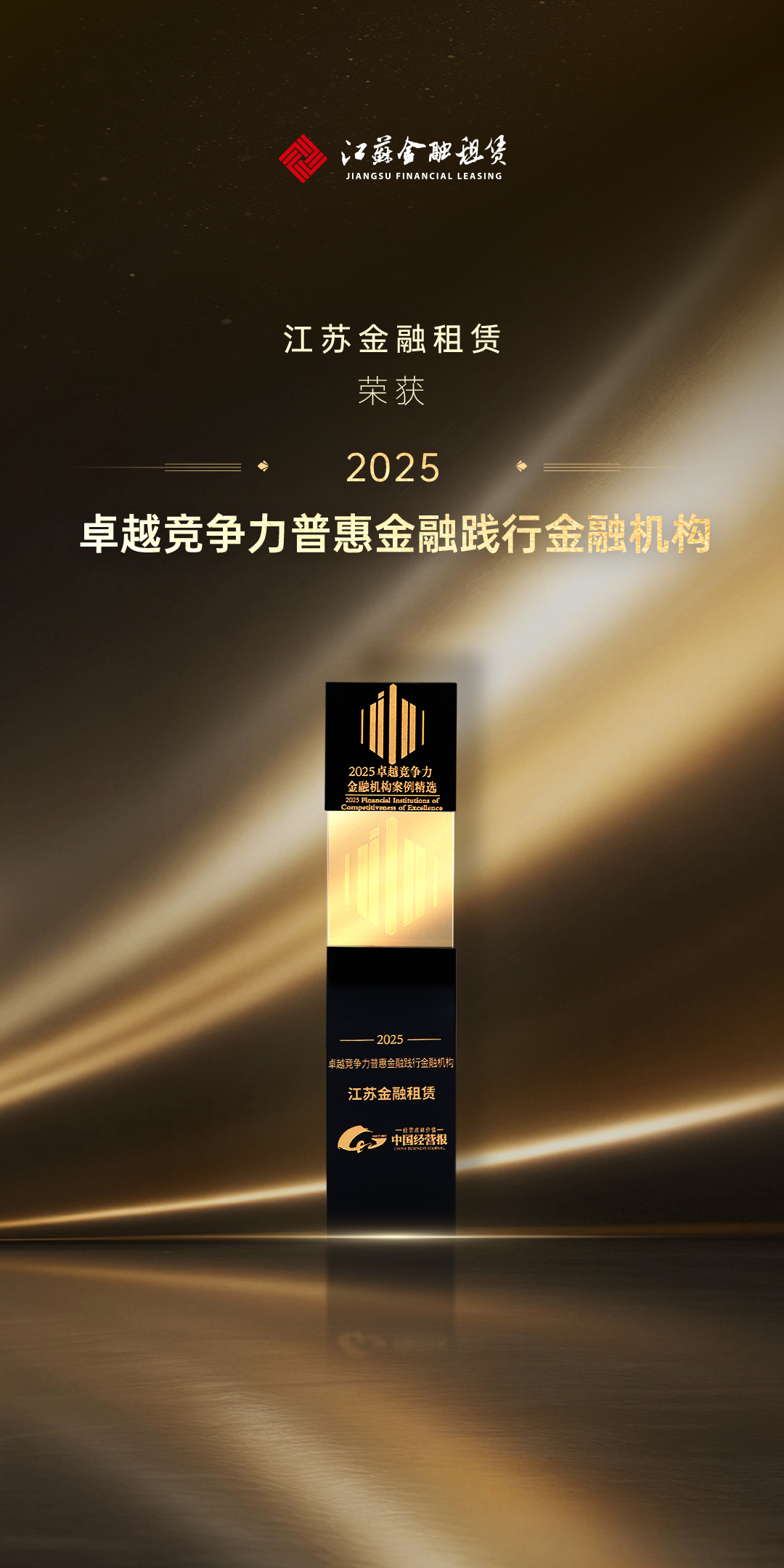 江苏金租荣膺“2025卓越竞争力普惠金融践行金融机构”
