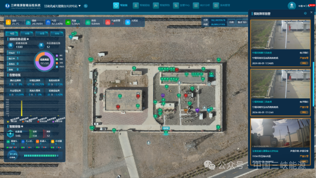 此次三峡能源研发的“基于多源感知及云边融合的新能源场站智能化系统”为新能源行业建立了可推广、可复制、可共享的智能场站接入方式,针对新能源智能场站建设和接入缺乏标准化、场站算法模型迭代与共享困难、机器巡检与人工巡检、人工智能算法模型缺乏等问题提出解决方案,并实现三大创新:一是实现基于云边融合的新能源智能场站整体技术架构,实现了云边资源和数据的统一管理。二是构建基于云边融合环境的算法管理机制,实现新能源智能场站的算法管理及共享。三是研制基于云边管理模式的一体化新能源场站智能化系统,实现新能源场站可推广、可复制、可共享的智能接入方式,达到了各级生产管理人员远程自动巡检和远程决策。
