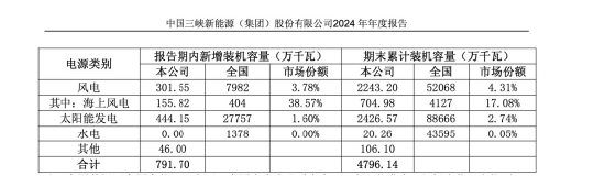 2024年,公司新增装机容量791.70万千瓦,累计装机容量达到4796.14万千瓦。