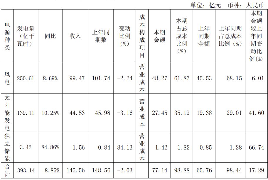 (3)随着并网项目陆续投产,折旧及运营成本随在建工程转固同比增加。