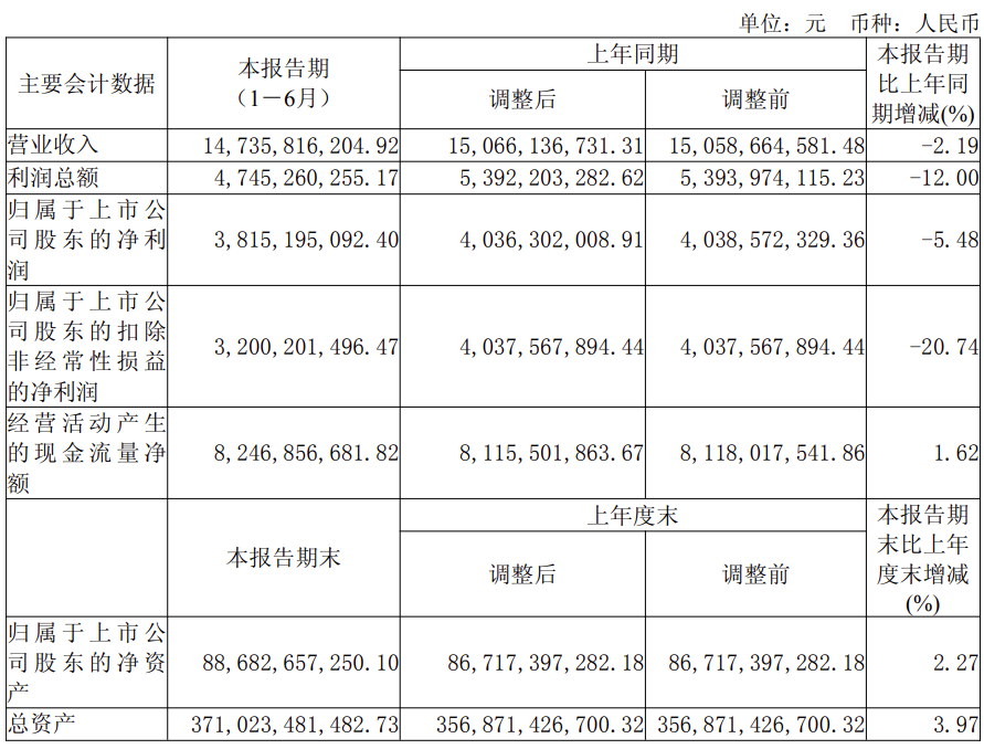 2025年1-6月,公司营业收入较上年同期(调整后)下降2.19%,利润总额较上年同期(调整后)下降12.00%,归属于上市公司股东的净利润较上年同期(调整后)下降5.48%,主要原因是: