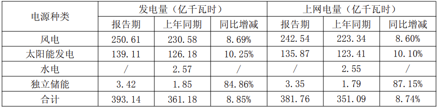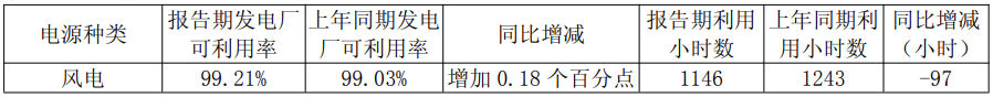 (1)受电源分布和各地区消纳情况综合影响,发电平均利用小时数同比下降;