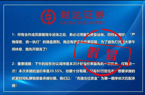 我司近期发现假冒财达证券非法证券活动线索如下(包括但不限于如下信息)