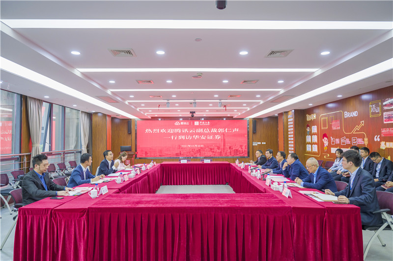 华安证券党委书记、董事长章宏韬,党委副书记、总裁杨爱民,腾讯云副总裁、腾讯金融云总裁郭仁声出席并见证签约。公司党委委员、副总裁徐峰与腾讯金融云商务副总裁倪莉作为双方代表签订战略合作协议。华安证券总裁助理余海春、腾讯金融云资管行业商务总监蒋文峰等相关负责人参加会议。