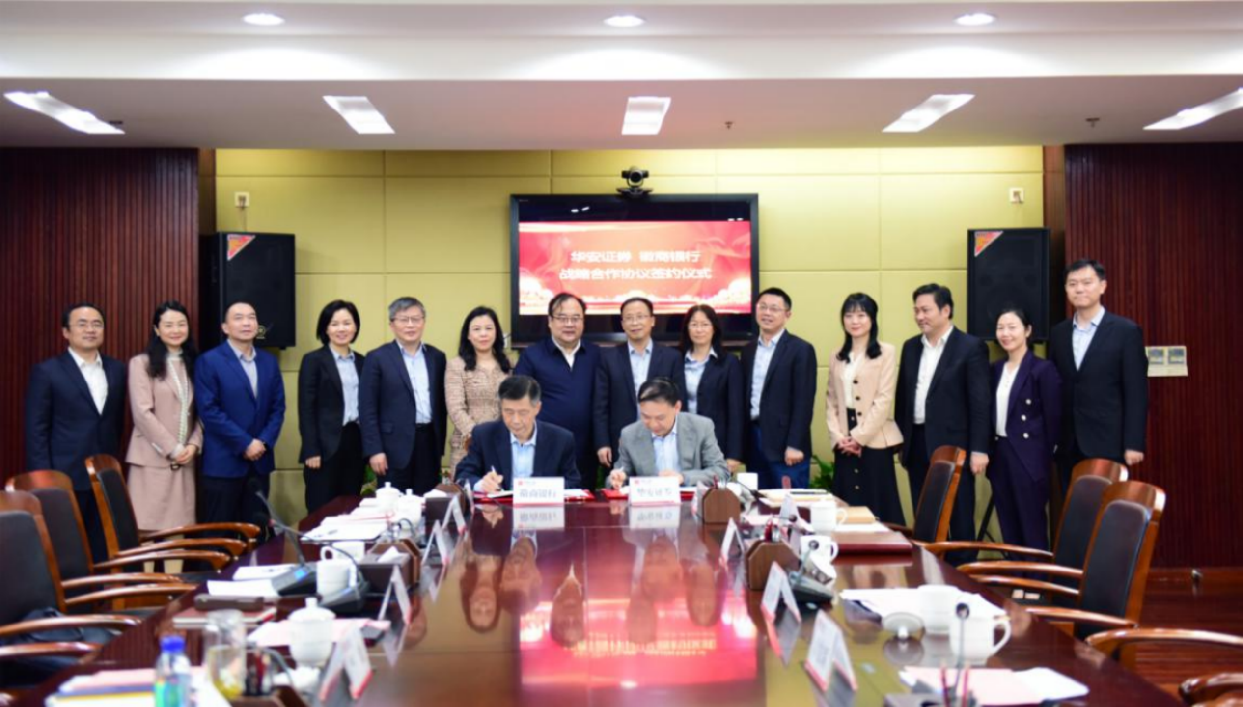 10月20日下午,华安证券与徽商银行举行战略合作协议签约仪式。华安证券党委书记、董事长、总经理章宏韬,徽商银行党委书记、董事长严琛及双方相关负责人出席签约仪式。公司党委委员、副总经理方立彬与徽商银行党委委员、副行长张居中作为双方代表签署协议。