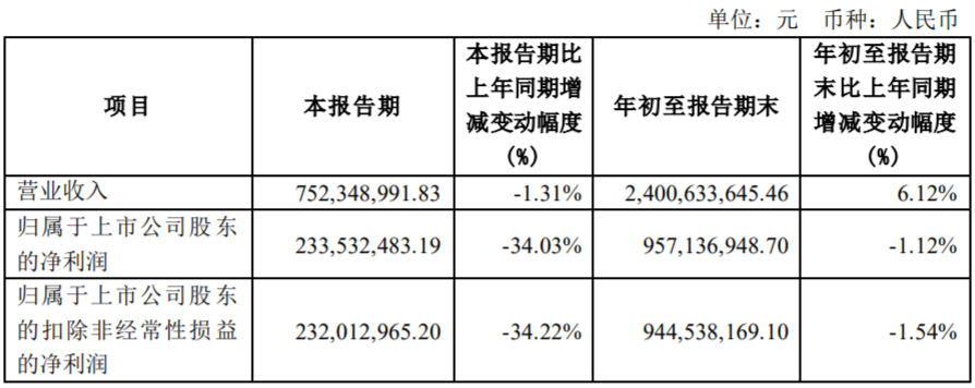 其中第三季度华安证券营业收入为7.52亿元,同比减少1.31%;归属于上市公司股东的净利润2.34亿元,同比减少34.03%;实现归属于上市公司股东的扣非净利润2.32亿元,同比减少34.22%;基本每股收益0.05元,同比减少37.50%;加权平均净资产收益率1.18%,同比减少0.70个百分点。