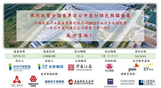 近日,华安证券作为主承销商的水发兴业能源首期私募绿色熊猫债券,在上海证券交易所成功落地。本期债券系全国首单非公开发行绿色熊猫债券,也是《中国人民银行国家外汇管理局关于境外机构境内发行债券资金管理有关事宜的通知》于2023年1月1日起施行后的首单交易所市场熊猫债券。