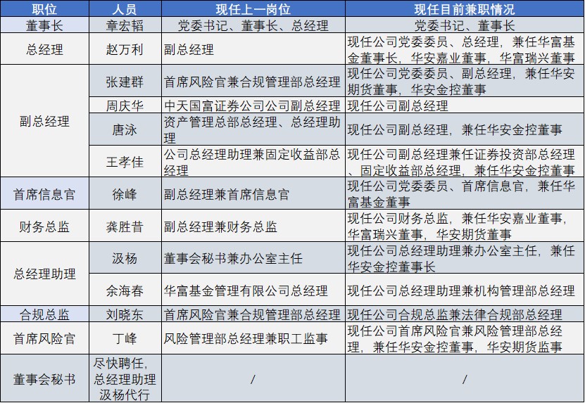 同时,总经理、副总经理、首席信息官、财务总监、总经理助理、合规总监、首席风险官、董事会秘书等多个职位的人员发生了调整变动。