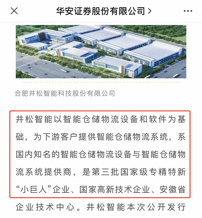 目前,被监管部门点名的研报已无法查询到,不过,界面新闻发现,2022年,华安证券研公号曾发布过关于上市公司井松智能IPO的文章。