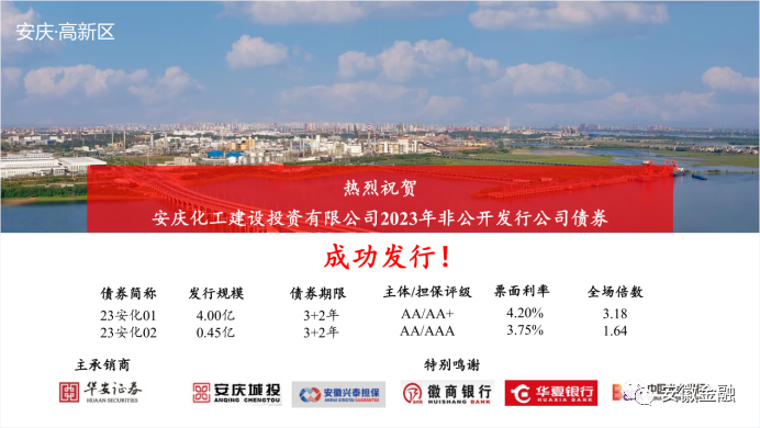 12月7日,安庆化工建设投资有限公司2023年面向专业投资者非公开发行公司债券(第二期),在上海证券交易所成功簿记发行。