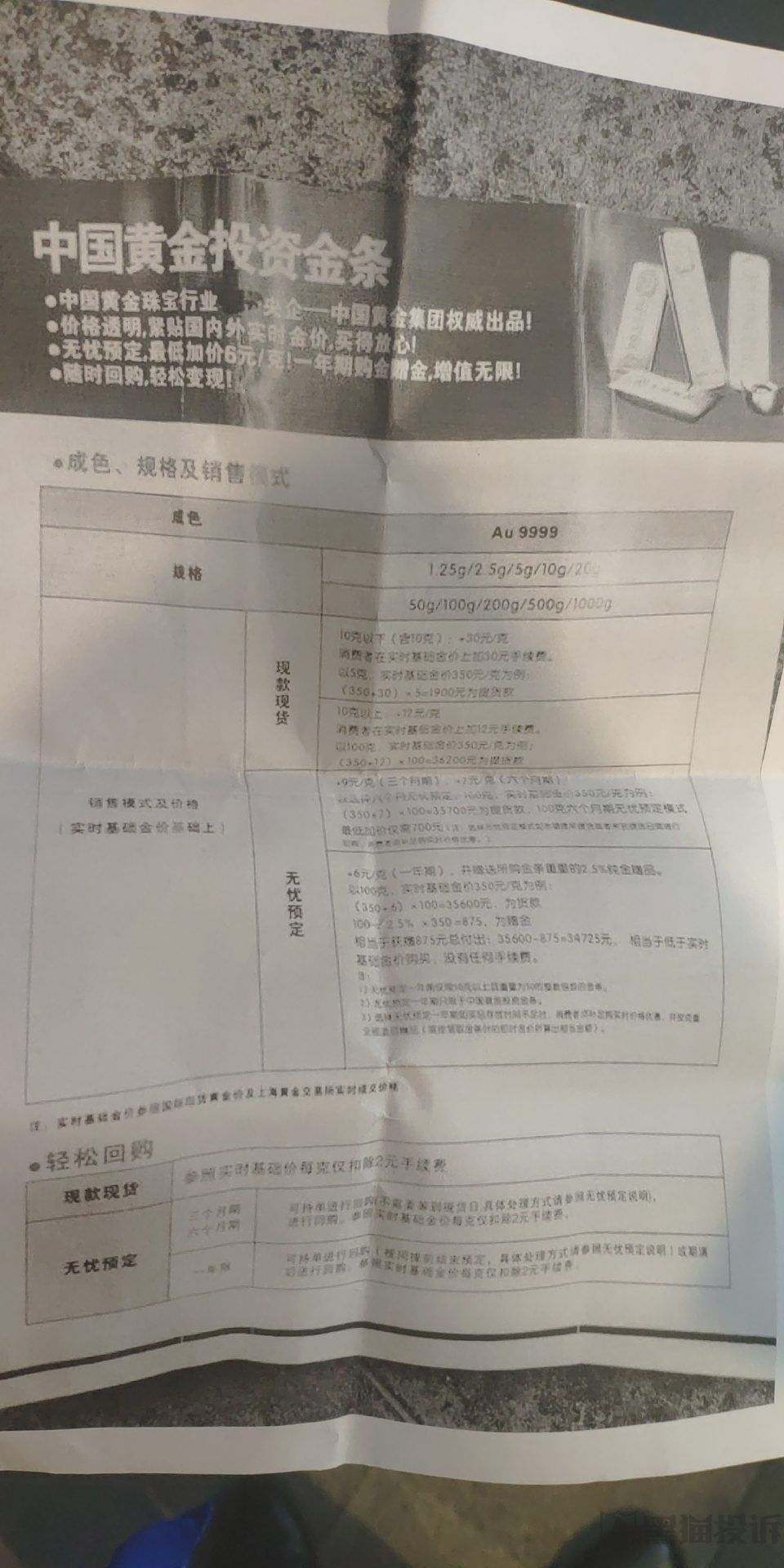 (消费者提供的中国黄金富力广场店广告单)