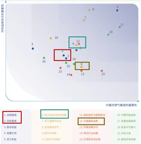 图:重庆燃气2023年实质性议题及双重重要性矩阵