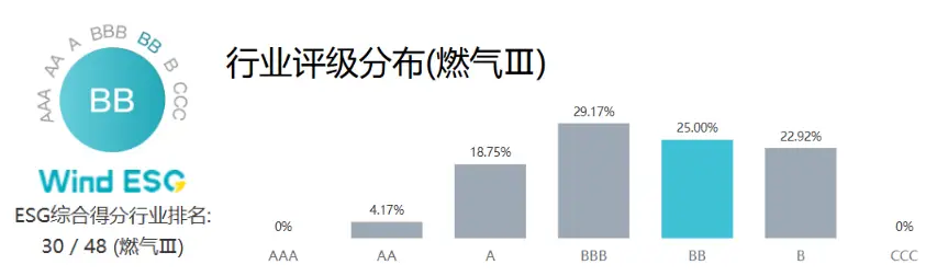 图:重庆燃气Wind ESG评级及燃气行业评级分布