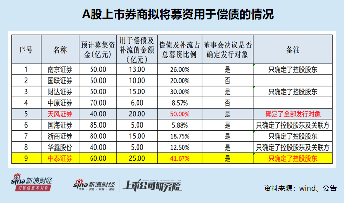 其中,中泰证券打算用来偿还债务的金额占募资总额的比例高达41.67%,超过了30%的“红线”。