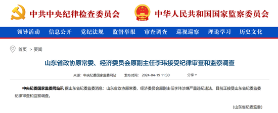 近日,据中纪委网站消息,山东省政协原常委、经济委员会原副主任李玮涉嫌严重违纪违法,目前正接受山东省纪委监委纪律审查和监察调查。