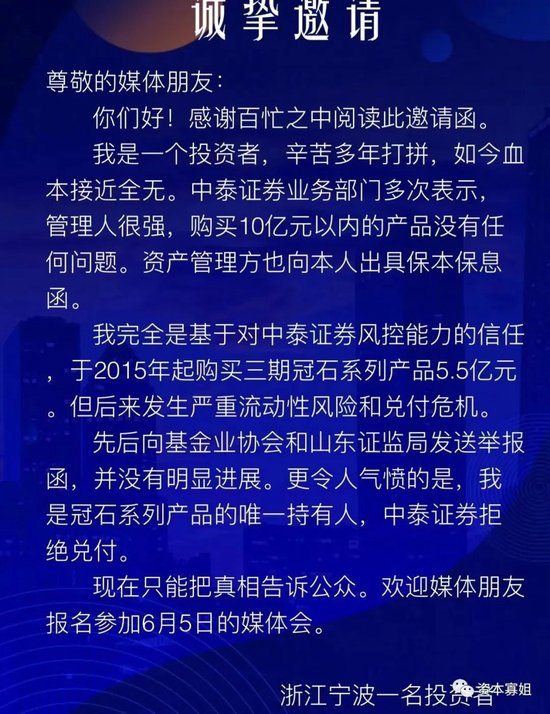 员工为了卖产品也是拼了,要知道,此前中泰证券IPO期间,就曾卷入过宁波投资人5.5亿债券违约风波,投资人指出公司当初承诺保本保息的刚兑原罪,时至今日中泰证券还是没长记性。