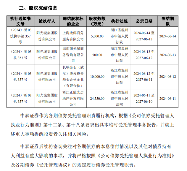 中泰证券股份有限公司关于福建阳光集团有限公司新增重大诉讼和资产受限情况的临时受托管理事务报告发布