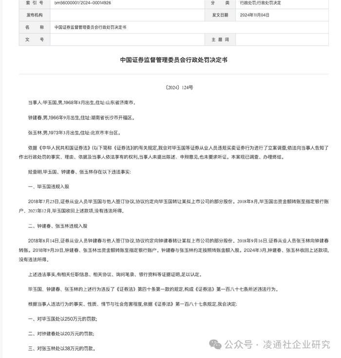 证监会网站最新披露的 2 个处罚案例触目惊心,原中泰证券副总裁毕玉国等一窝人违规入股拟上市公司。