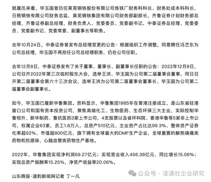 2 、这个处罚的本质简单说就是券商投行的领导用自己的影响力入股拟上市公司,等待上市后减持发财。中泰证券 2023 年 8 月 29 日公告,毕玉国因组织调整而辞职,根据证监会的这个处罚书的时间点,不能肯定毕玉国是先被查了再辞职退股,还是如何,2013 年 8 月 19 日山东当地公开媒体报道,毕玉国已任华鲁集团党委副书记、董事。中泰证券公告的时间节点有问题。