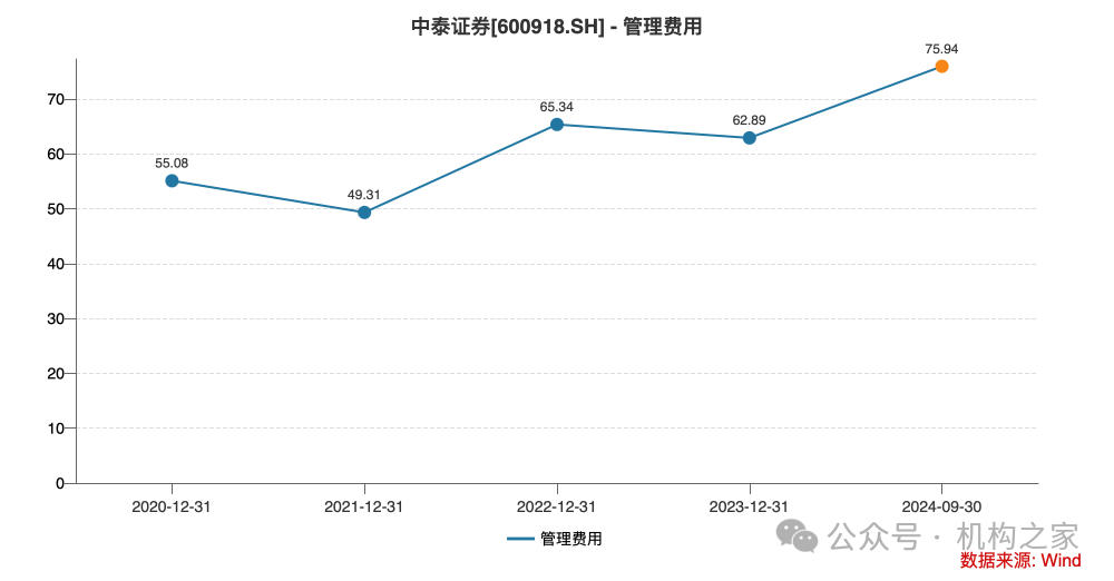 费用控制方面,2024年上半年公司业务及管理费用同比小幅上升1.30%至38.60亿元,但由于收入大幅下滑,导致营业费用率同比大幅上升18.18个百分点至75.70%,2024年三季度进一步上升到75.94%。成本占收入比重处于较高水平,运营效率有待提升。