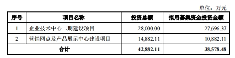 信捷电气2024年12月27日披露向特定对象发行股票证券募集说明书(修订稿)显示,本次发行计划募集资金总额不超过38,578.48万元(含本数),扣除发行费用后的净额拟投资以下项目:企业技术中心二期建设项目、营销网点及产品展示中心建设项目。