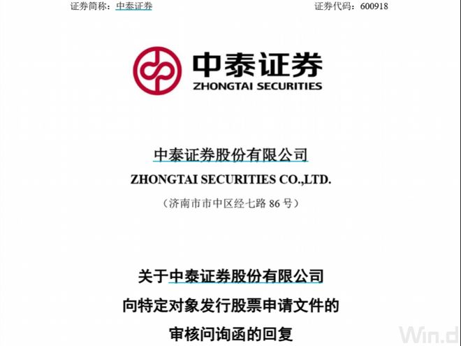 日前,中泰证券发布公告,回复上交所关于其向特定对象发行股票申请的问询,并更新了募集说明书。根据公告,中泰证券此前发布定向增发申请,并于6月11日收到上交所问询函,其中要求中泰证券就发行方案、募投项目合规性及财务状况等核心问题补充说明。