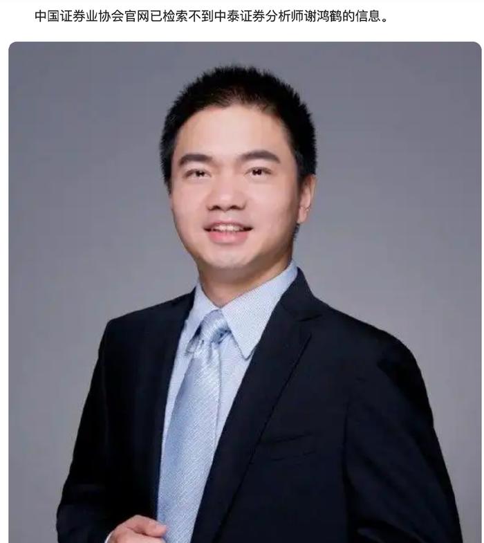 市场消息显示,中泰证券研究所副所长谢鸿鹤已离职,目前去向不明。