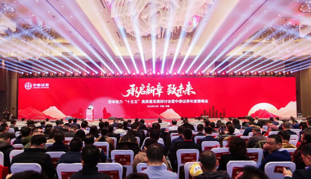 12月10日上午,“资本助力‘十五五’高质量发展研讨会暨 中泰证券 年度策略会”在济南盛大启幕。本次会议吸引了来自政府部门、学术界、实体企业、金融机构等超1300位嘉宾参会,近400家核心上市公司及100余家山东区域上市公司开展深入交流,共谋时代机遇、共谱发展新篇。