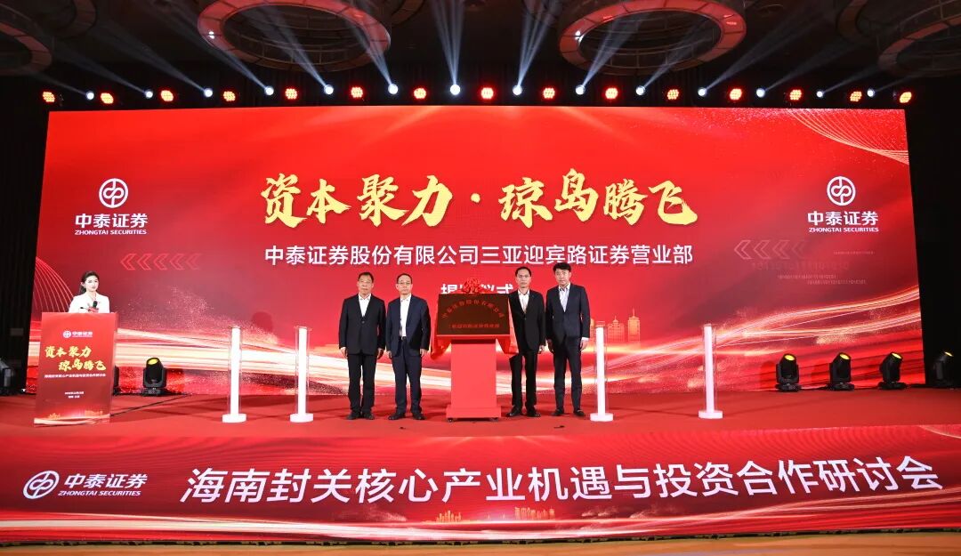 12月18日,海南自贸港正式启动全岛封关之际,中泰证券“资本聚力?琼岛腾飞—海南封关核心产业机遇与投资合作研讨会”在三亚成功举办,中泰证券三亚迎宾路证券营业部同日揭牌开业。