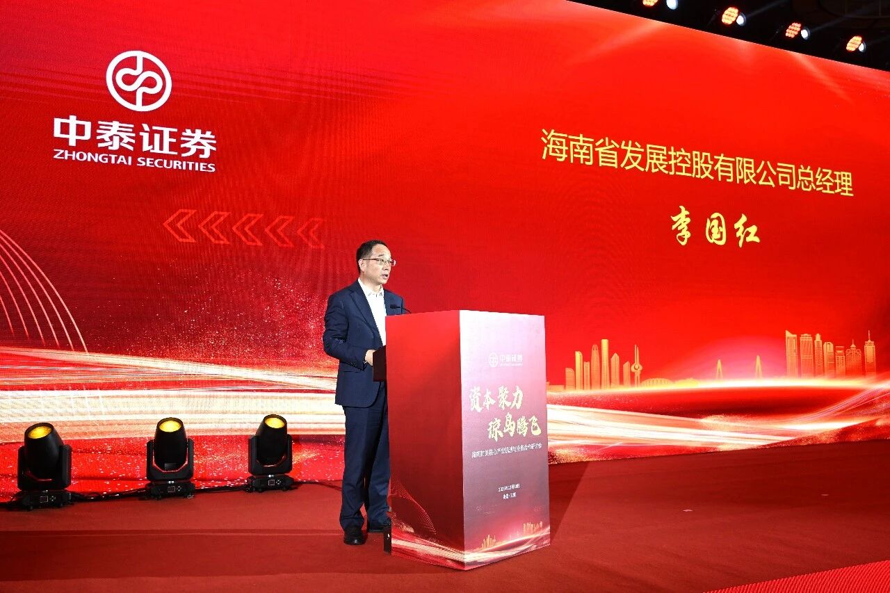 李国红在致辞中对中泰证券三亚迎宾路证券营业部揭牌表示热烈祝贺。他说,前期海南控股与中泰证券已在多领域结下深厚合作情谊,此次集团层面的战略合作升级,标志着双方合作迈入全方位、深层次的新阶段,彰显了金融机构与省属国企携手助力三亚实体经济高质量发展、共同服务海南自贸港建设大局的坚定决心。海南控股将整合旗下低空经济、免税商贸、城市开发等核心产业资源,深入探索在航空航天、生物制药、数字经济等战略性新兴产业领域的发展机会,依托中泰证券的专业金融服务能力,共同打造一批具有标杆意义的金企合作示范项目,积极推动优质项目与要素资源落地,在服务地方经济社会发展、助力海南自贸港建设中发挥更大战略支撑作用。