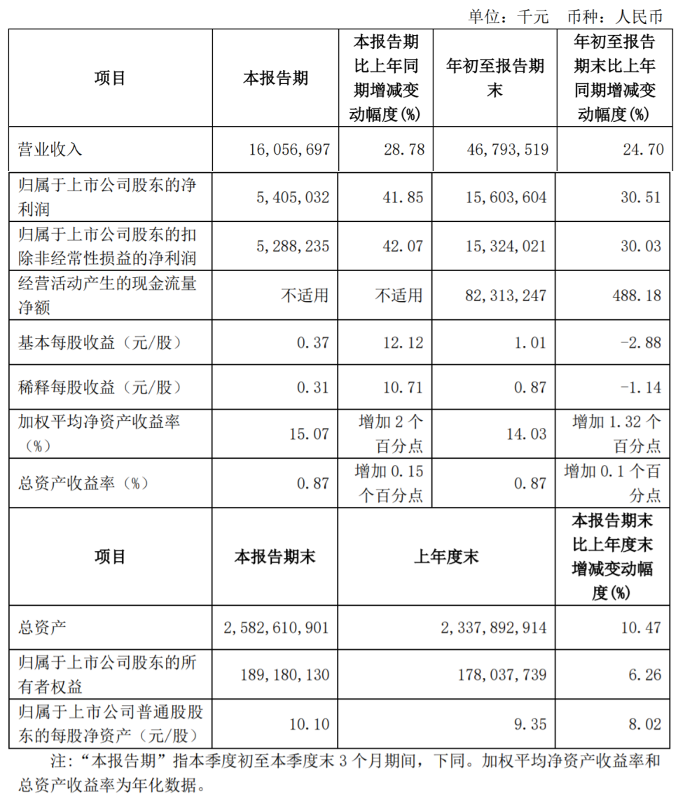 公告显示,江苏银行第三季度营业收入为160.57亿元,同比增加28.78%; 属于上市股东的净利润为54.05亿元,同比增加41.85%。