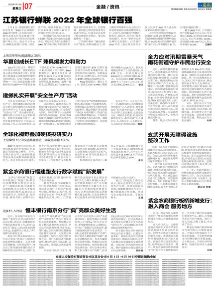 泰康人寿保险有限责任公司江苏分公司6月1日~6月30日登报注销执业证进乡村、入社区恒丰银行南京分行“典”亮群众美好生活江苏银行蝉联2022年全球银行百强建邺扎实开展“安全生产月”活动华夏创成长ETF兼具爆发力和耐力全力应对汛期雷暴天气雨花街道守护市民出行安全全球化视野叠加硬核投研实力紫金农商银行福建路支行数字赋能“新发展”玄武开展无障碍设施整改工作紫金农商银行板桥新城支行:融入商会服务地方